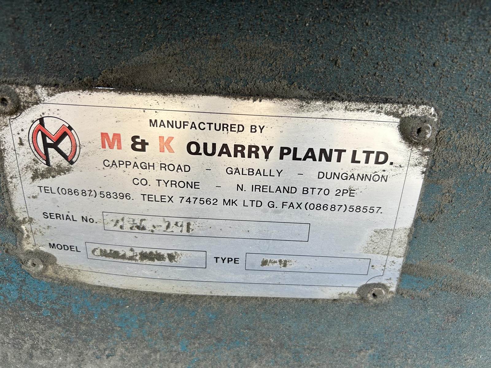 M&K Quarry Plant Portable Screener. Not Pretty but is an Excellent Runner. 4 x 8 Deck. Rebuilt Lister Diesel Engine. Tipping Grid. Includes a 60 Foot and a 40 Foot Stacker, and Two Steel Scaffold Walkways. Ideal for a Small Pit.