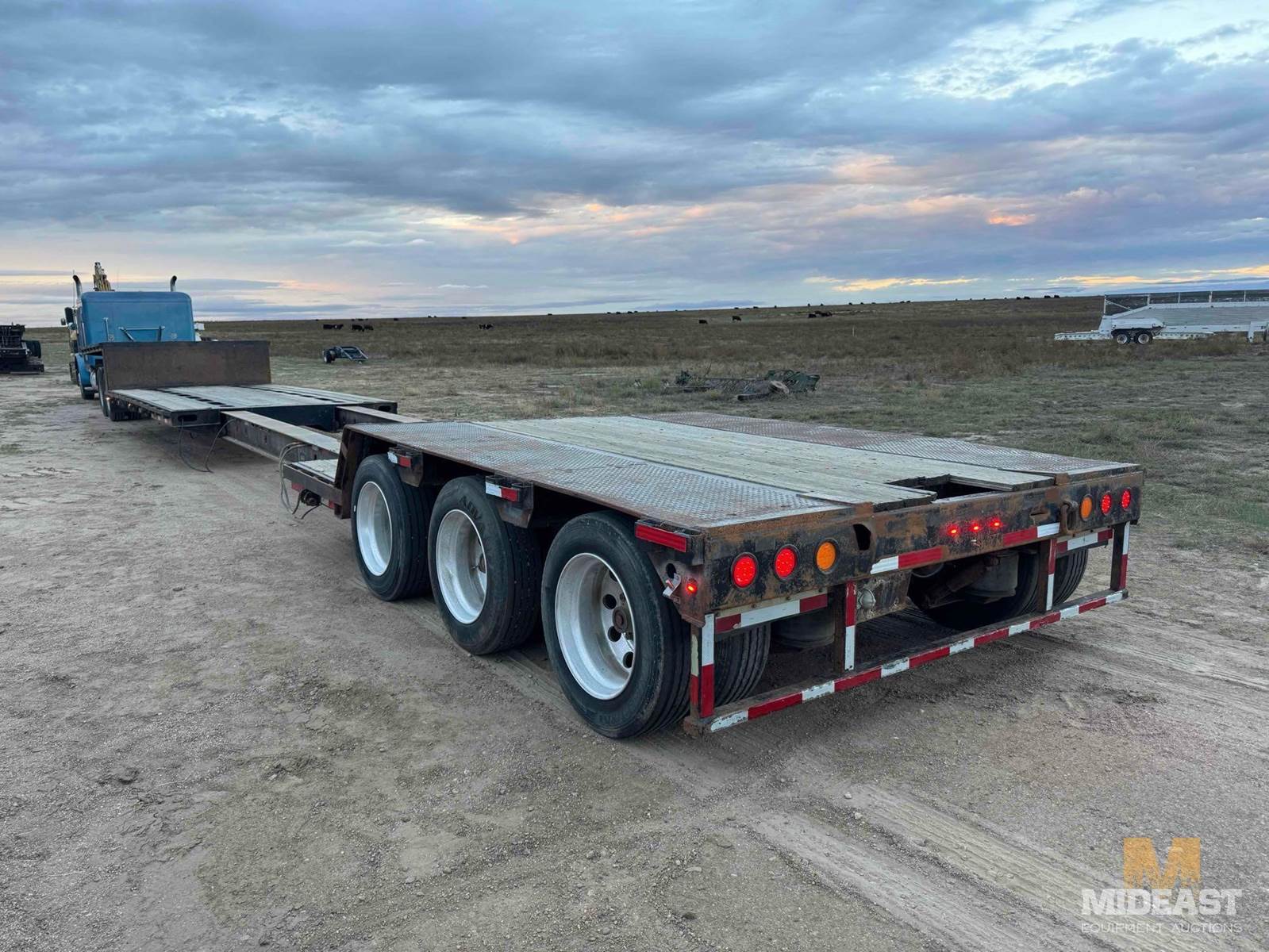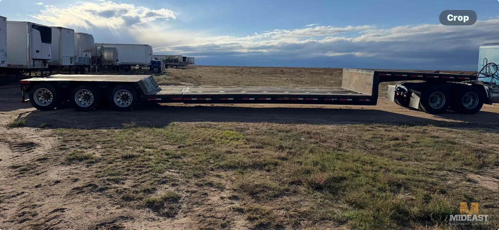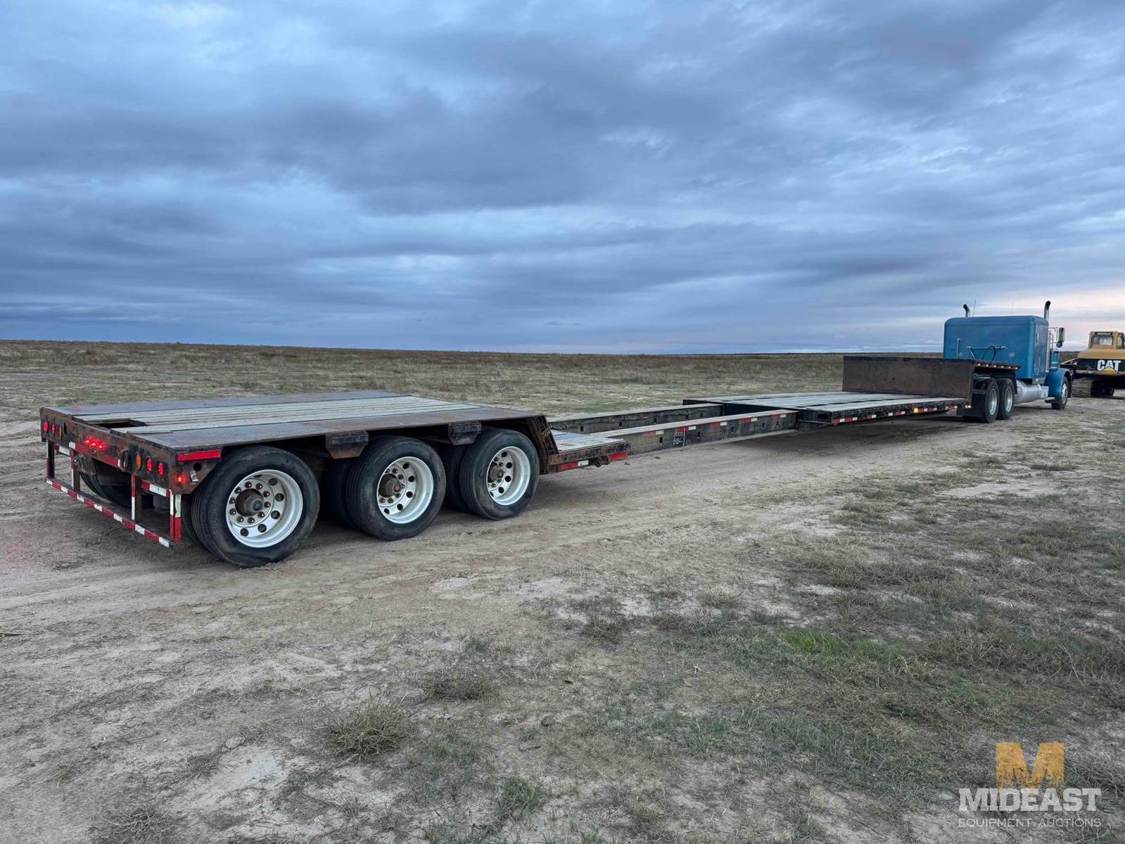 1990 Trail King, 3-axle Double Drop, Ex-t-e-n-d-a-b-l-e 52’ OAL closed, 10’ wide, 13’ upper deck, 24” lower deck height, 26’ lower well- closed, 44’-6” well- openedWill lock in increments,18” rise to rear deck, 42” high deck over axles, 255/70R22.5 tires, Aluminum wheels