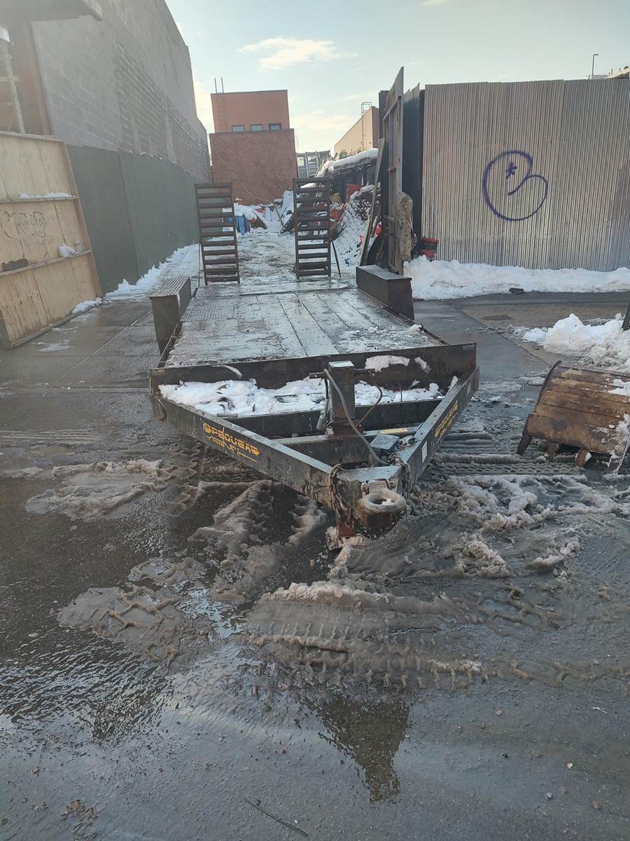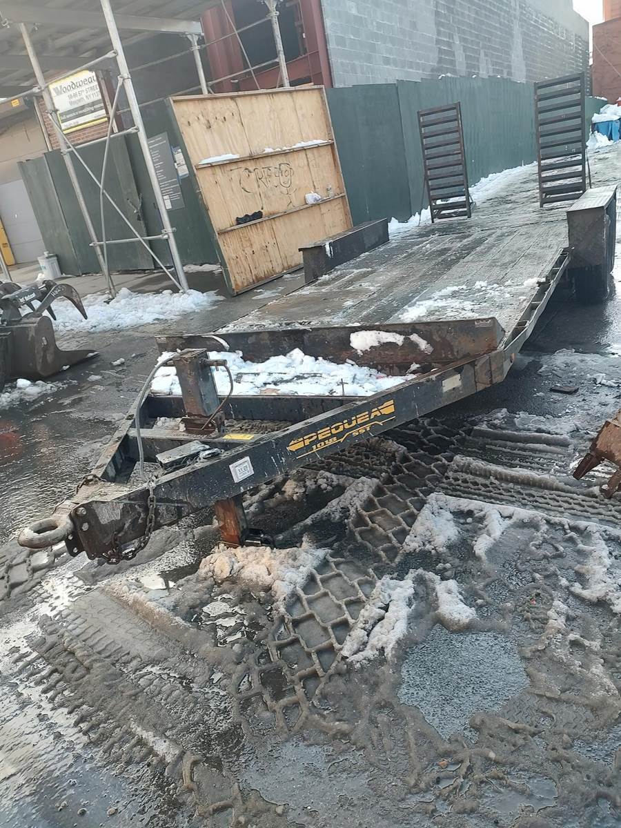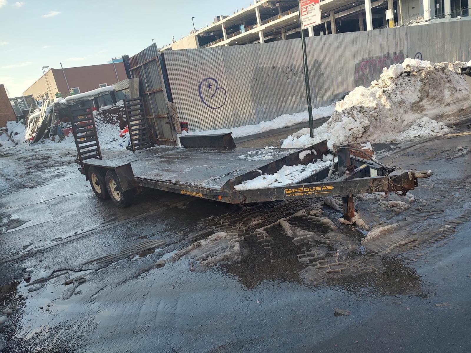 Good Condition! Peque 12,000 Lbs. GVWR Equipment Trailer. Bed Length of 18 Feet and Width of 82 Inches. Has 2 Steel Loading Ramps - 54 Inches.